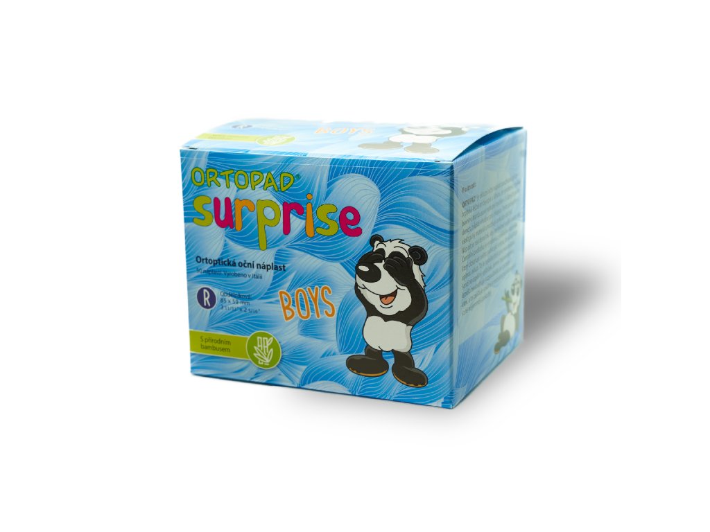 ORTOPAD® Surprise Boys jsou vyrobeny z barevné bambusové netkané textilie s pěti různými motivy, vybranými speciálně pro dívky. Pohodlný a ekologický materiál umožňuje pokožce dýchat.